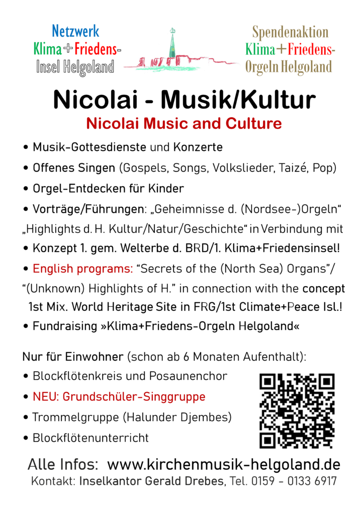 • Weltweit einzigartige Spendenaktion Klima+Friedens-Orgeln Helgoland